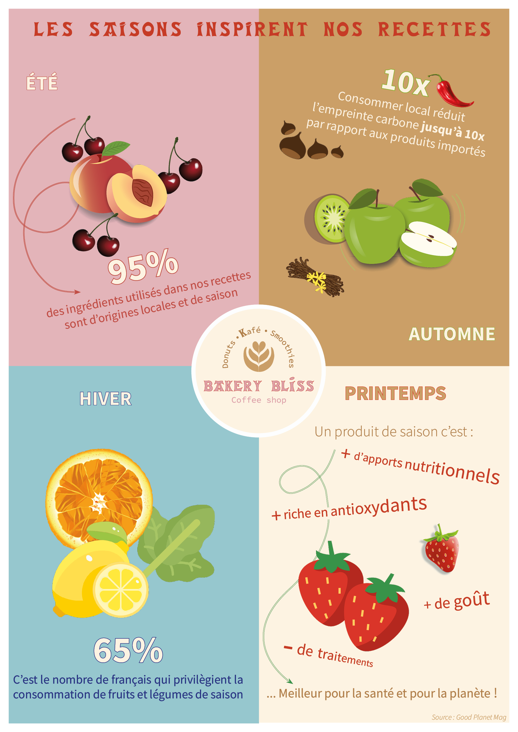 En choisissant des ingrédients de saison, nous réduisons notre empreinte écologique et soutenons les producteurs locaux. L’hiver laissez-vous surprendre par l’intensité des agrumes, au printemps la fraise fait son grand retour, apportant fraîcheur et gourmandise, l’été célèbre les fruits gorgés de soleil, et l’automne enveloppe de parfums chaleureux aux notes acidulées.